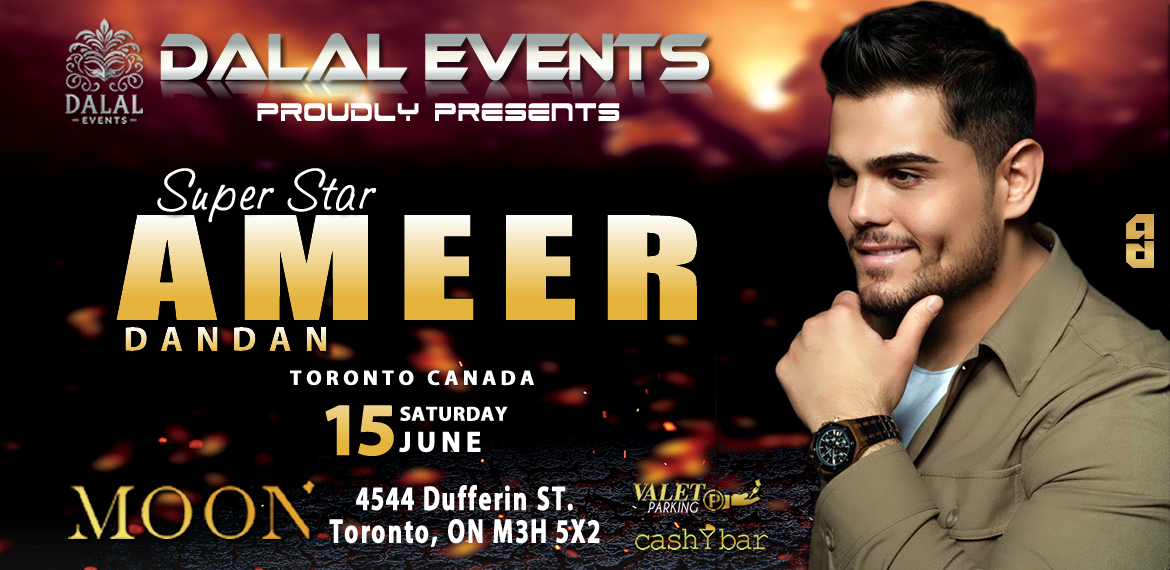 Join us for an unforgettable evening of Palestinian music and entertainment as superstar Ameer Dandan takes the stage at Toronto's Moon Restaurant & Bistro! With his captivating vocals and high-energy performances, Ameer is sure to leave a lasting impression on the audience. Don't miss this unique opportunity to experience one of Arab Idol Stars music live in Toronto. Ticket prices vary between $120 and $175, please refer to the floor plan for more information. All tickets inclusive of full maza and dinner.